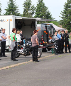 - das abwechselnde Fahren der Teilnehmer auf unserem speziellen Schräglagen-Motorrad